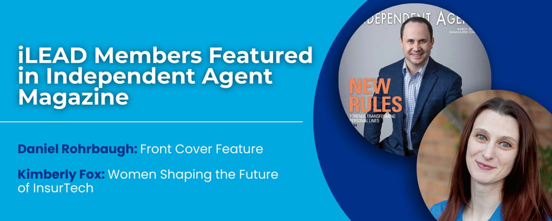 Two iLEAD committee members are making waves nationally! Daniel Rohrbaugh, President of Raleigh Insurance Group and past iLEAD Chair, is featured on the front cover of the March issue of the Big 'I' Independent Agent magazine and contributes insights in the article “7 Trends Transforming Personal Lines.”